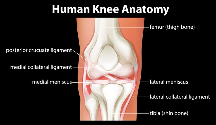 Your knee is a synovial joint: two bones (femur and tibia), a meniscus between them, ligaments, tendons, and a whole lot of lube fluid around.